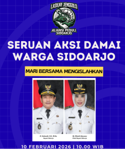 Laskar Jenggolo Aliansi Peduli Sidoarjo telah resmi melayangkan surat pemberitahuan aksi unjuk rasa besar-besaran kepada Ketua DPRD Kabupaten Sidoarjo. Aksi yang dijadwalkan pukul 10.00 WIB tersebut membawa misi penyelamatan marwah pemerintahan daerah yang dinilai lumpuh akibat disharmoni kepemimpinan.