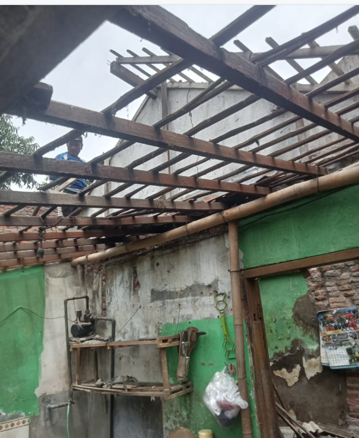 Pada hari ini, 9 Desember 2025, proses pembongkaran rumah tidak layak huni tersebut telah dimulai sebagai tahap awal renovasi. Berdasarkan hasil pengecekan lapangan, bagian atap dan rangka bangunan mengalami kerusakan parah sehingga membahayakan keselamatan penghuni.