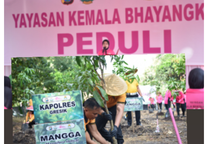 GRESIK – Komitmen terhadap pelestarian lingkungan dan penguatan ketahanan pangan kembali ditunjukkan Yayasan Kemala Bhayangkari (YKB) Cabang Gresik melalui aksi penanaman puluhan pohon produktif di kawasan Asrama Polisi Randuagung, Kecamatan Kebomas, Rabu (22/4/2026). Kegiatan ini menjadi bagian dari rangkaian peringatan Hari Ulang Tahun (HUT) ke-46 YKB tahun 2026.