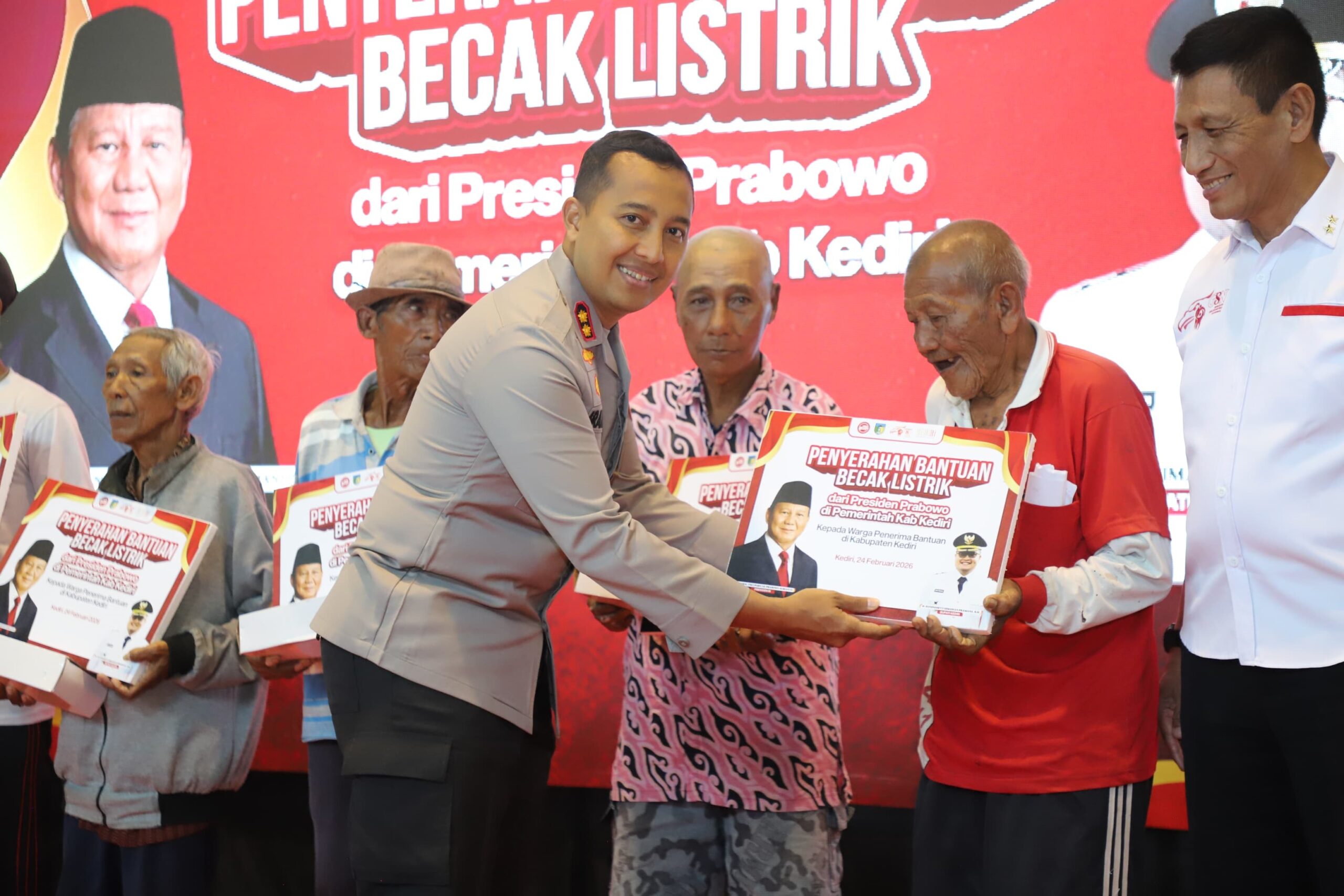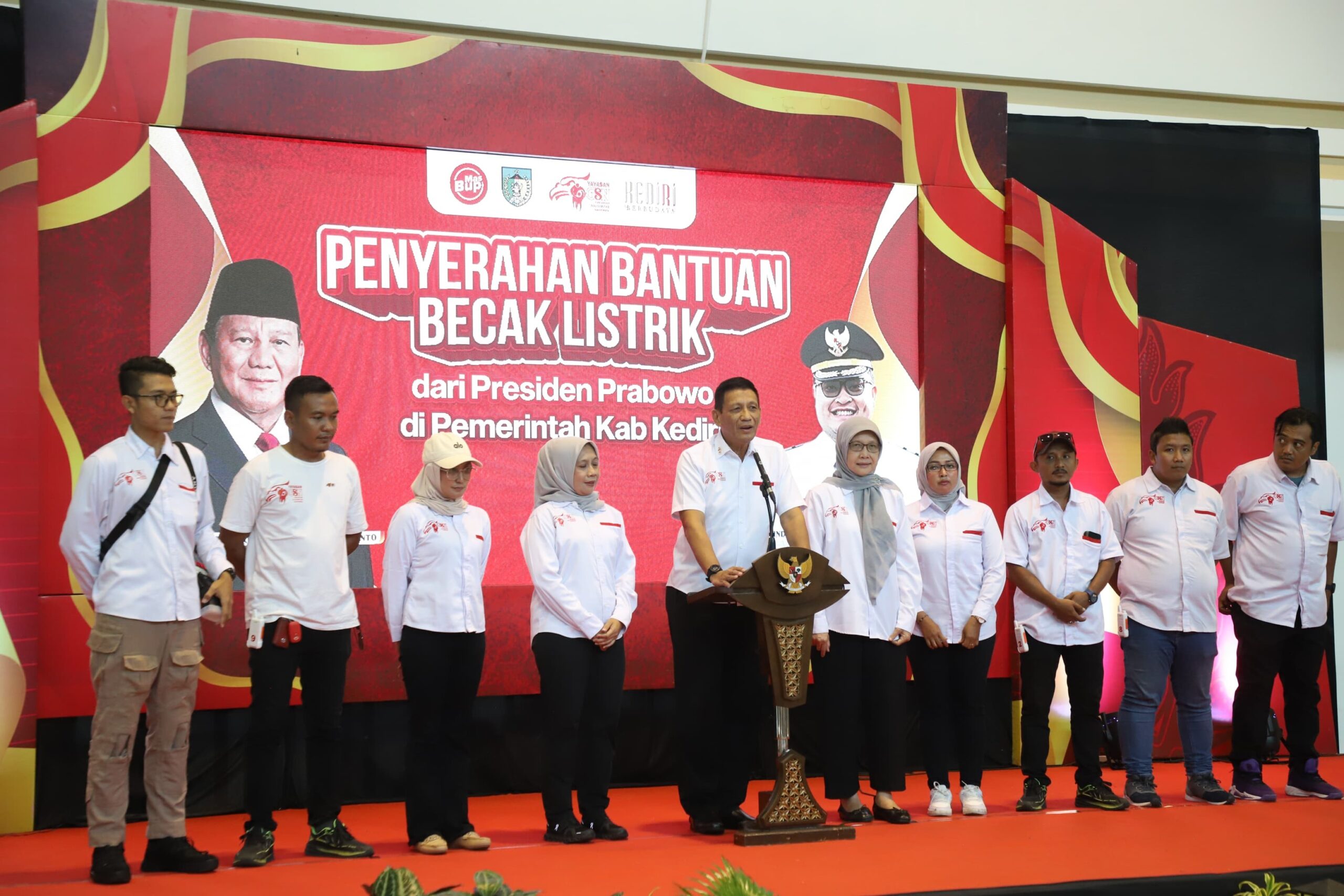 KEDIRI, jatim.expost.co.id –– Sebanyak 200 tukang becak di Kabupaten Kediri menerima bantuan becak listrik dari Presiden RI Jenderal TNI (Purn.) H. Prabowo Subianto D., Selasa (24/2/2026).