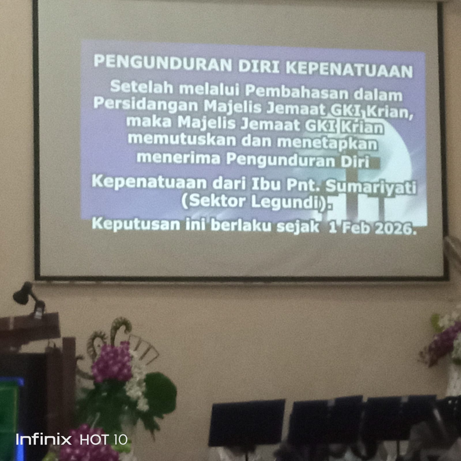 KRIAN SIDOARJO- 1 Februari 2026, telah terjadi tindakan yang tidak menyenangkan yang dilakukan Ketua Majelis Gereja GKI Krian Dengan Rustam dan sebagai Pendeta GKI Krian saudara Pdt Sigit , Saya sebagai Pimpinan redaksi mendengar dan melihat sambutan terakhir oleh wakil ketua majelis GKI Krian berinisial Sara ,dalam sambutannya beliau tidak merasa menulis atau mengirim surat dalam hal mengundurkan diri dari pelayanannya , Tim media konfirmasi ke salah satu pendeta GKI Krian Pdt Sigit , beliau membenarkan bahwa wakil ketua sudah mengundurkan diri Berdasarkan Notulen yang dibuat dan di putuskan oleh Ketua Majelis GKI Krian yaitu saudara Rustam
