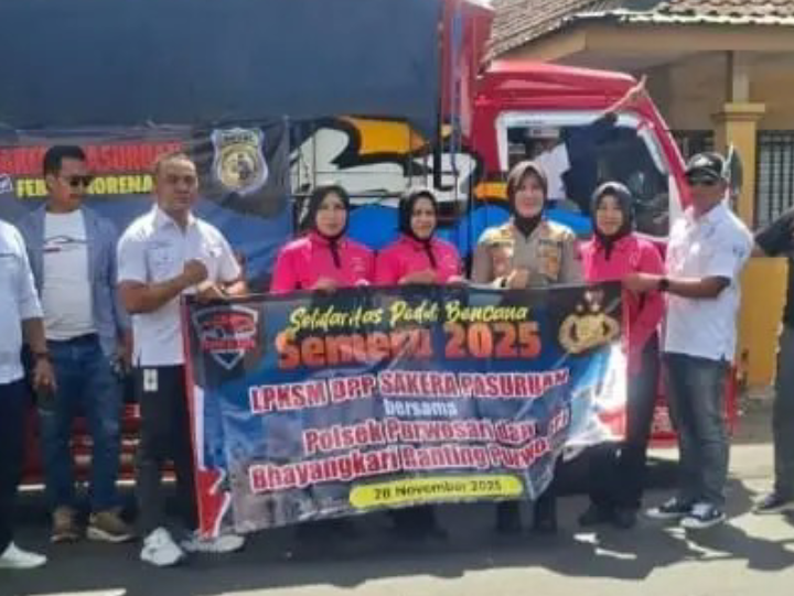 PASURUAN – Lembaga Perlindungan Konsumen Swadaya Masyarakat (LPKSM) Sakera, berkolaborasi dengan Polsek Purwosari, memberangkatkan dua truk bantuan sosial (bansos) untuk korban erupsi Gunung Semeru 2025.