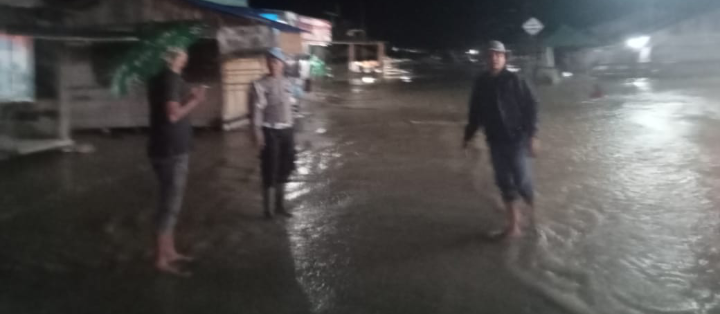 Satuan Kapolsek suro makmur gerak cepat Hadir di TKP banjir walaupun air tidak seberapa dalam namun di rasa perlu untuk menjaga keaman masyarakat .