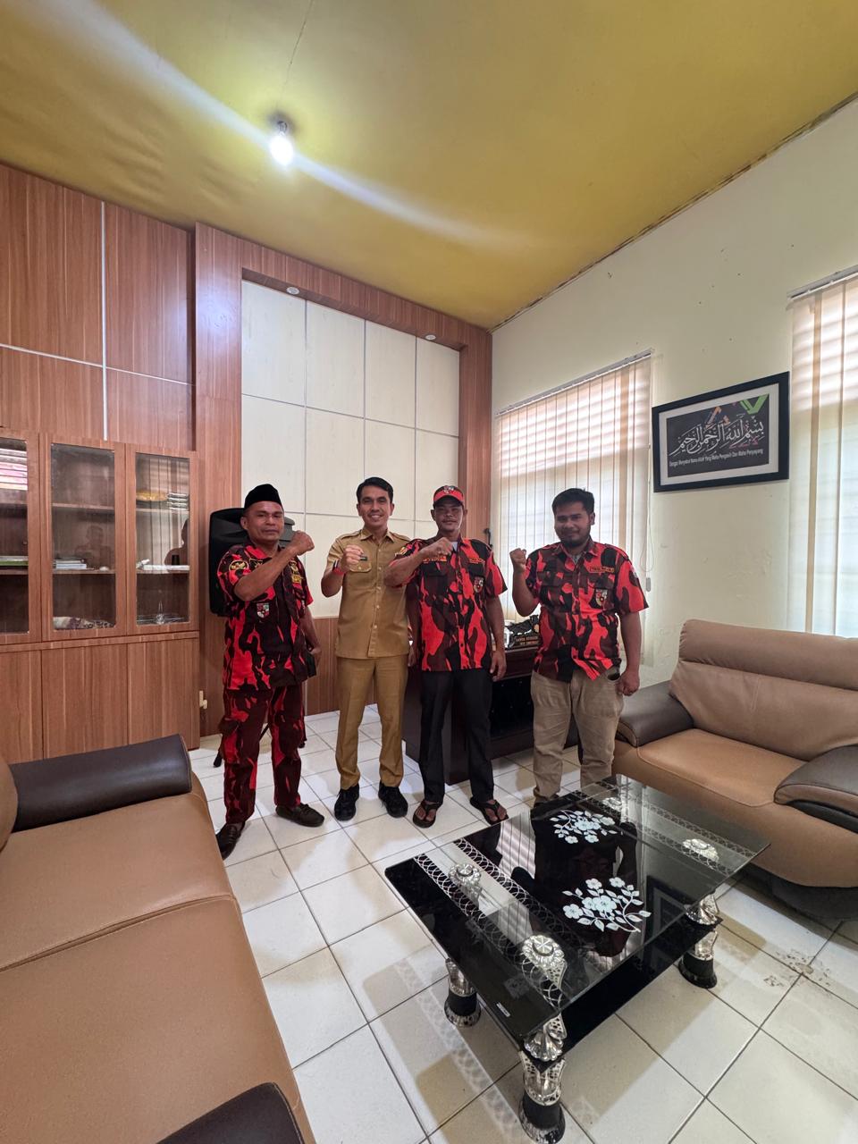 Pengurus pemuda pancasila ( PP) kecamatan soro Makmur Silatu Rahmi dengan camat suro Makmur Ganda bancin