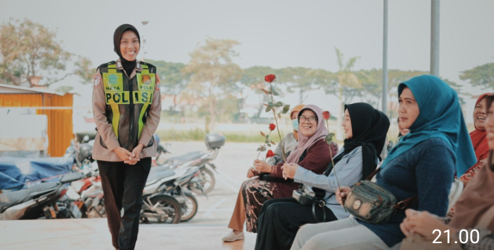 Tak hanya berbagi bunga, kegiatan juga diisi dengan edukasi interaktif. Para Polwan mengajak pemohon perempuan berdialog santai seputar etika dan keselamatan berlalu lintas.