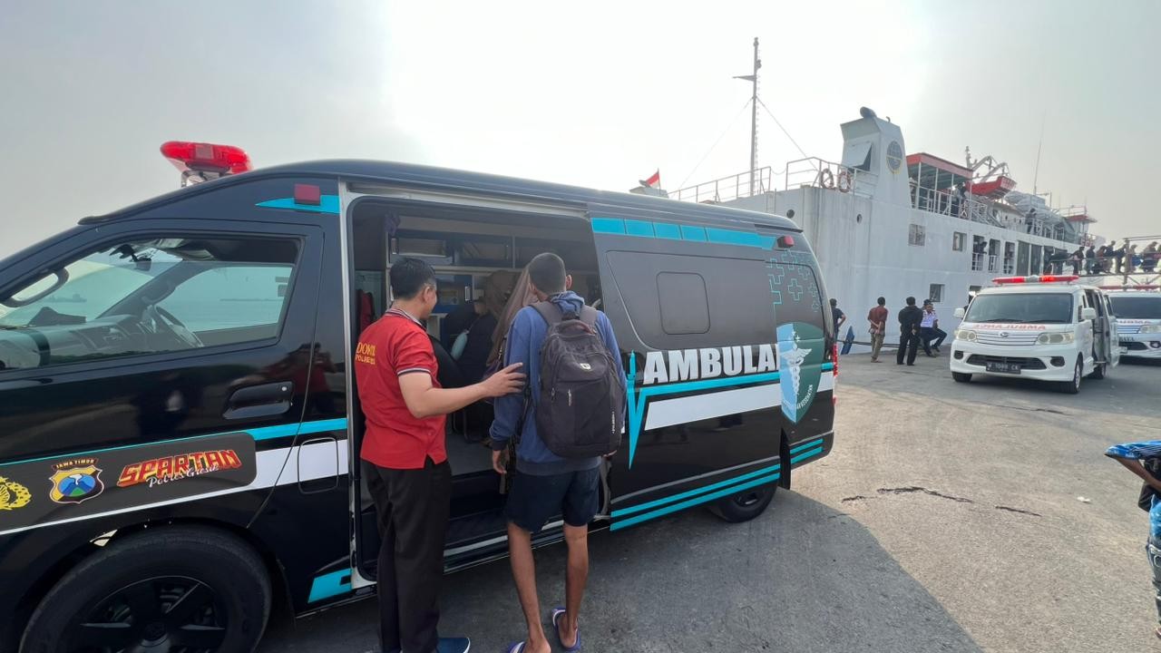 Di tengah hiruk pikuk pelabuhan, Halimatus tak dibiarkan berjalan sendiri. Sebuah ambulance dengan logo Polres Gresik terparkir rapi, pintunya terbuka. Kasi Dokkes Polres Gresik Iptu Sugioto menyambutnya dengan senyum ramah.
