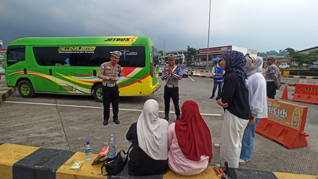 Pamflet berisi imbauan dan edukasi tertib berkendara itu dibagikan di rest area jalan Tol kepada pengendara yang sedang beristirahat.