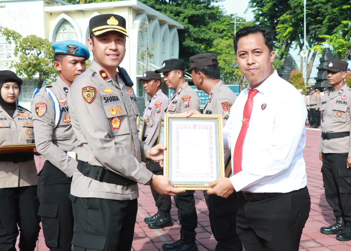 GRESIK – Komitmen Polres Gresik dalam menghadirkan layanan kepolisian yang profesional kembali diwujudkan melalui pemberian penghargaan kepada personel berprestasi serta tokoh masyarakat yang aktif membantu tugas kepolisian. Penghargaan tersebut diberikan dalam upacara resmi di Lapangan Apel Polres Gresik, Jalan Wahidin Sudirohusodo No. 214, Kebomas, Senin (8/12/2025) pagi.