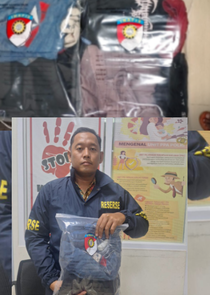 Tim Unit Perlindungan Perempuan dan Anak (PPA) Satreskrim Polres Gresik turut mengamankan sejumlah barang bukti berupa pakaian yang digunakan korban dan tersangka saat kejadian.