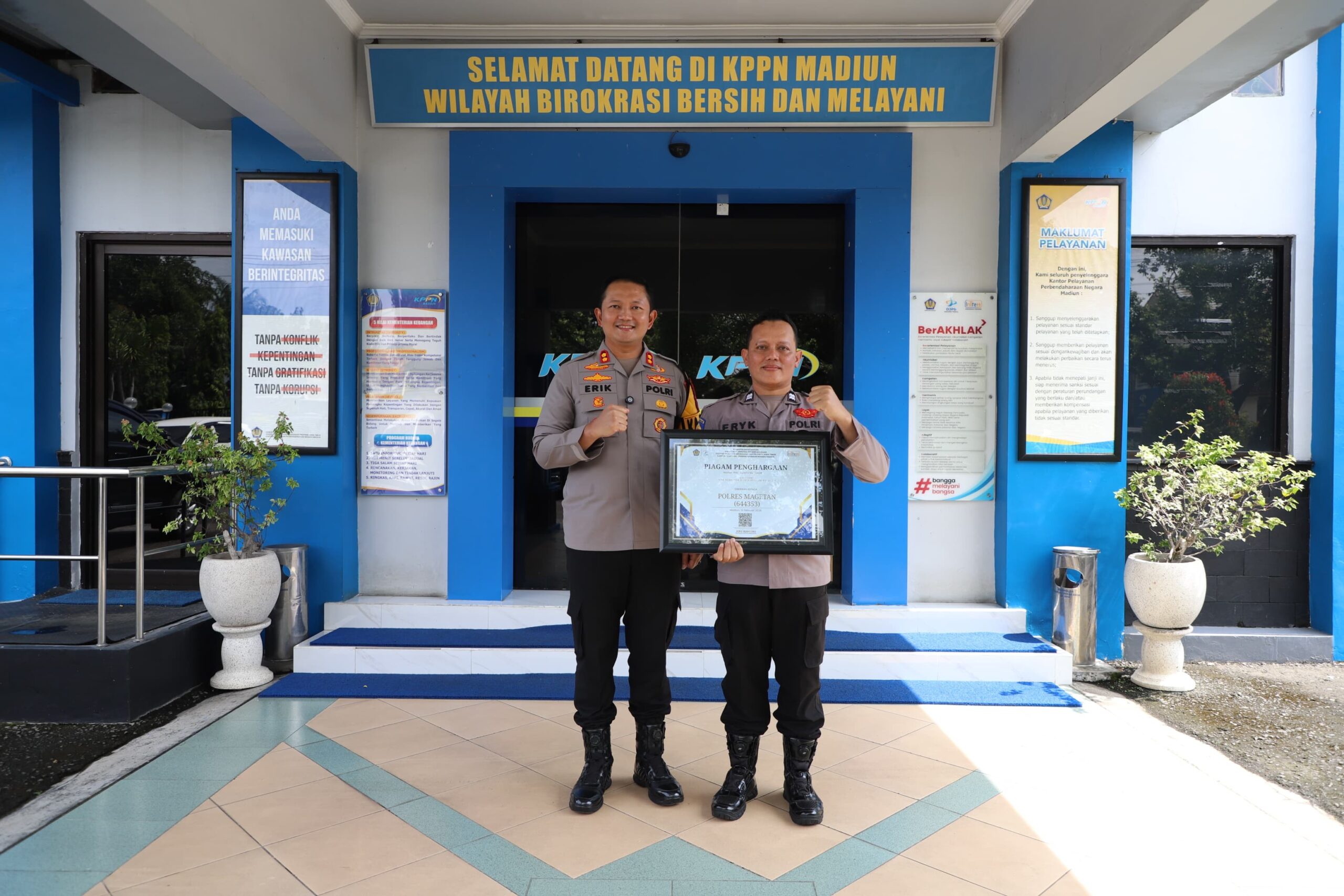 Penghargaan tersebut diterima langsung oleh Kapolres Magetan, AKBP Raden Erik Bangun Prakasa, bertempat di Kantor Pelayanan Perbendaharaan Negara (KPPN) Madiun, Jalan Salak, Kota Madiun, Rabu (11/2/2026) yang lalu.