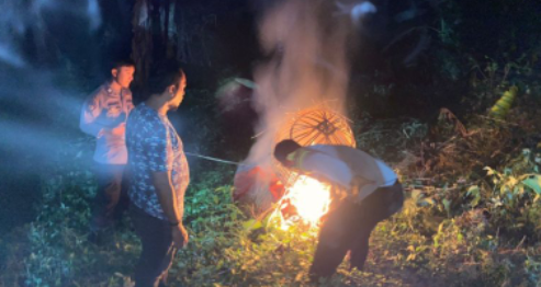 Selanjutnya, petugas langsung melakukan pembongkaran dan pembakaran sarana tersebut.