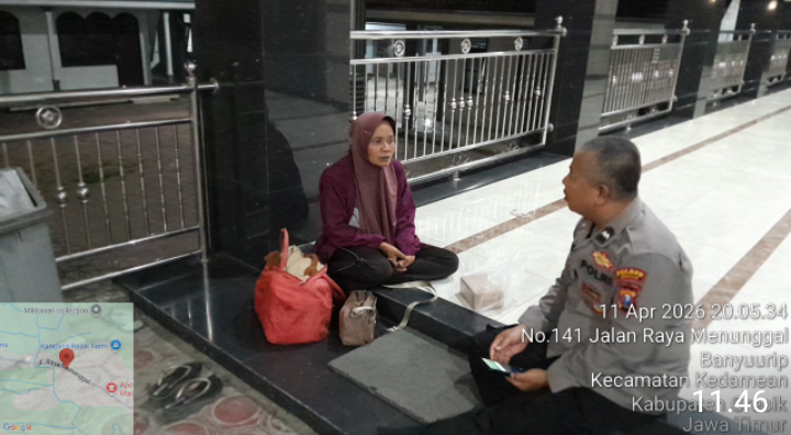 Peristiwa tersebut terjadi pada Sabtu (11/4/2026) sekitar pukul 19.30 WIB di Masjid Baitul Hamdi, Desa Menunggal, Kecamatan Kedamean, Kabupaten Gresik. Warga melaporkan adanya seorang perempuan dalam kondisi bingung dan kelelahan.