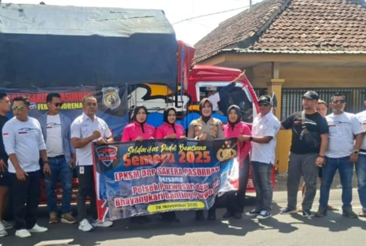 “Giat ini bentuk solidaritas dan tali asih antara LPKSM Sakera dan Polsek Purwosari untuk saudara yang terdampak erupsi Semeru 2025,” urai Iptu Santy Wijaya.