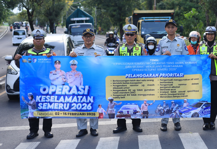 GRESIK – Upaya meningkatkan kesadaran keselamatan berlalu lintas terus dilakukan Satlantas Polres Gresik melalui pendekatan humanis. Dalam Operasi Keselamatan Semeru 2026, petugas menggelar aksi simpatik di kawasan Gresik Kota Baru (GKB) dengan memberikan edukasi langsung sekaligus membagikan cokelat kepada pengguna jalan yang tertib.