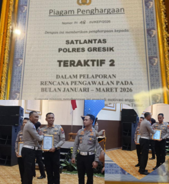 GRESIK – Kinerja aktif dan konsisten yang ditunjukkan Satuan Lalu Lintas (Satlantas) Polres Gresik berbuah prestasi di tingkat provinsi. Mereka sukses menyabet predikat “Teraktif 2” dari Polda Jawa Timur untuk kategori pelaporan rencana pengawalan periode Januari hingga Maret 2026.
