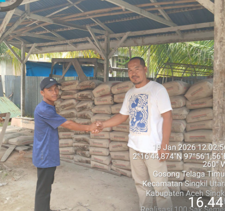 Alhamdulillah, infaq semen 100 Sak ini merupakan infaq pribadi Bapak H,Safriadi Oyon, S.H., selaku Bupati Kabupaten Aceh Singkil. Semoga Allah SWT membalas dengan kesehatan, keberkahan rezeki, serta kemudahan dalam mengemban amanah untuk umat dan daerah.