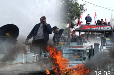 SURABAYA Puluhan massa yang tergabung dalam Aliansi Madura Indonesia (AMI) menggelar aksi demonstrasi di depan Kantor Wilayah Direktorat Jenderal Pemasyarakatan (Ditjen PAS) Jawa Timur pada Selasa 10/02/26.