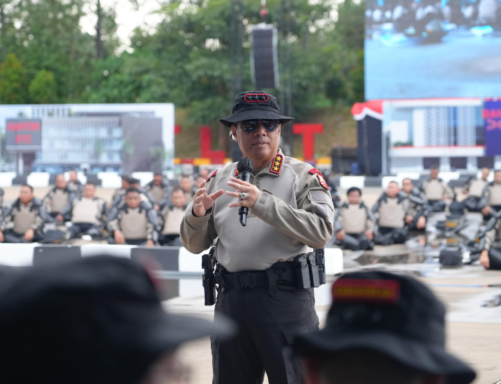 Wakapolri Komjen Dedi Prasetyo menutup kegiatan apel Kasatwil tahun 2025 di Satlat Brimob, Cikeas, Jawa Barat pada Rabu 26 November 2025.