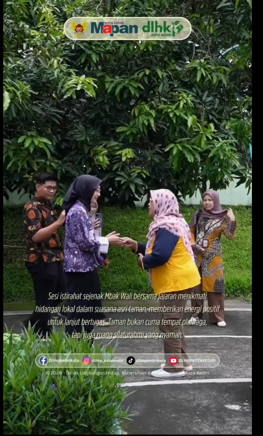 Sesi istirahat sejenak Mbak Wali bersama jajaran menikmati hidangan lokal dalam suasana asri taman, memberikan energi positif untuk lanjut bertugas. Taman bukan cuma tempat olahraga, tapi juga ruang silaturahmi yang nyaman.